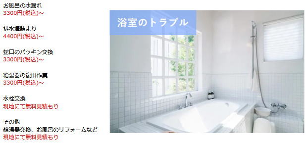 佐賀県で対応可能なお風呂(浴室)の修理サービスとなります。その他のトラブルはお気軽に受付スタッフまでご相談ください。